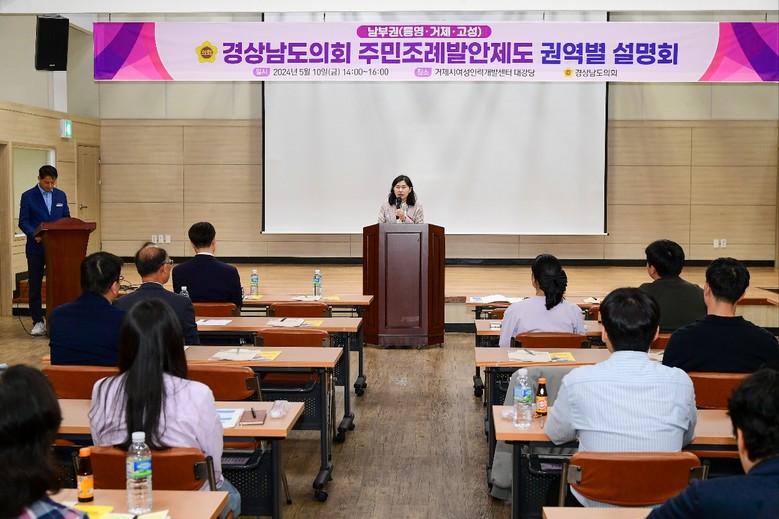 [경남 세계타임즈=최성룡 기자] 경상남도의회(의장 김진부)와 시군의회가 함께한 ’주민조례발안제도 5개 권역 설명회‘ 가 그 첫 시작으로 남부권 대표 거제시 여성인력개발센터에서 개최되었다.