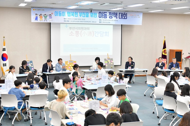 부산시의회에서 처음으로 시도한 이번 아동정책대회는 부산지역 아동들(초등학교 2학년부터 고등학교 2학년까지)과 학부모 100여명이 참석한 가운데 교육‧안전‧문화‧복지 분야별 10개조로 나누어 조별 토의를 진행하고, 조별 의제를 각각 결의문으로 발전시켰다.