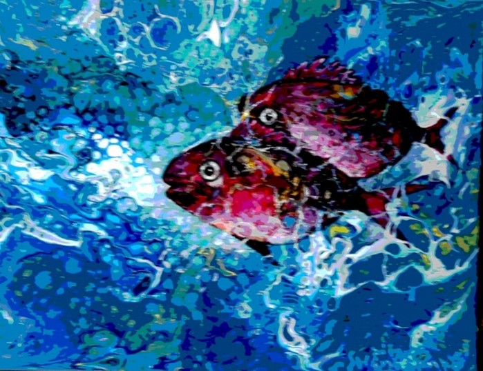 [사진 설명] 신현호 화백 작품 물고기 추상화.