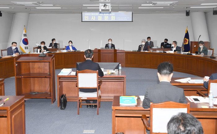 [광주=세계타임즈 손권일 기자] 광주광역시의회(의장 김용집)는 14일 시의회 예산결산특별위원회의실에서 김상묵 김대중컨벤션센터사장 후보자에 대한 인사청문회를 개최했다
