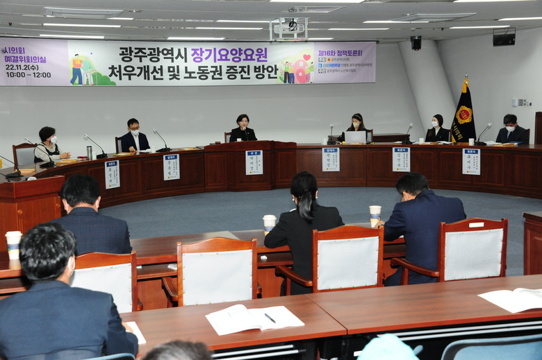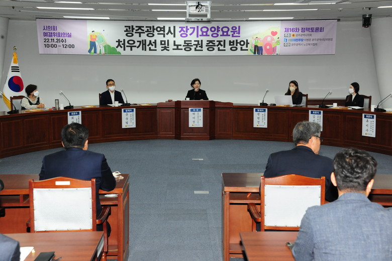 [광주 세계타임즈=손권일 기자] 광주광역시의회는 2일 오전 10시 시의회 5층 예산결산특별위원회실에서 ‘장기요양요원 처우개선 및 노동권 증진방안’이라는 주제로 정책토론회를 개최했다.