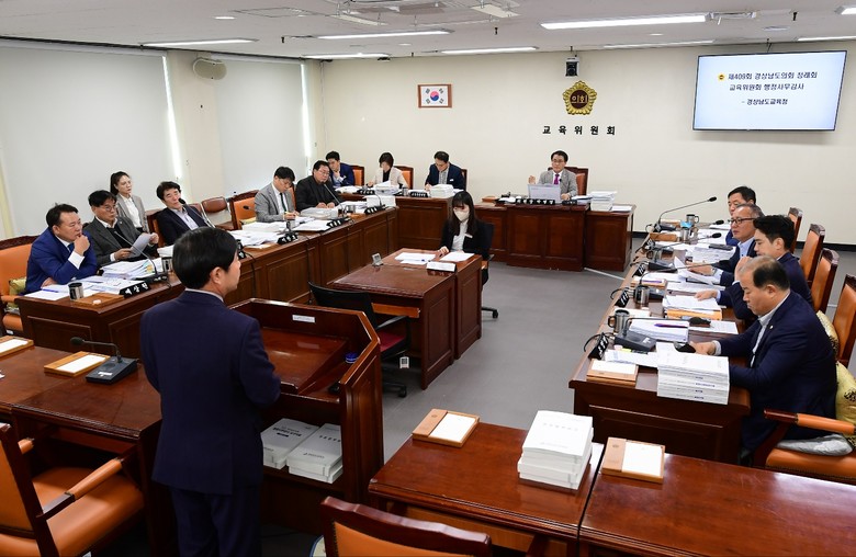 [경남 세계타임즈=최성룡 기자] 경상남도의회 교육위원회가 제409회 정례회 기간인 21일 행정사무감사에서 최근 문제가 된 사립학교 문제, 경상남도교육청 정책실장 업무권한에 대한 감사를 진행했다.