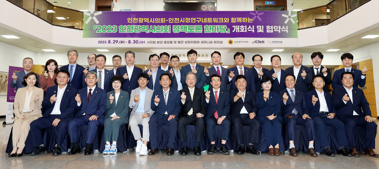 인천시의회는 29일 시의회 본관 1층 중앙홀에서 인천시정연구네트워크 회원기관(15개 공공기관)들과 정책 소통 활성화를 위한 업무협약식을 가진 후 30일까지 ‘2023 인천광역시의회 정책토론 한마당’을 개최한다.