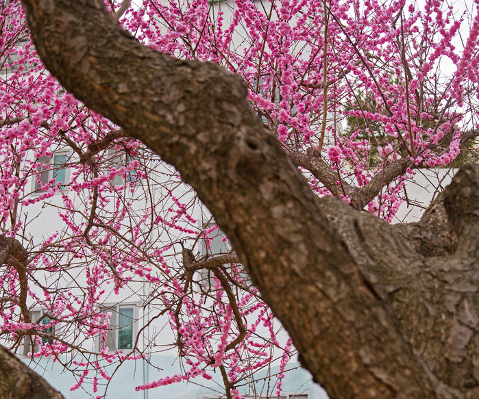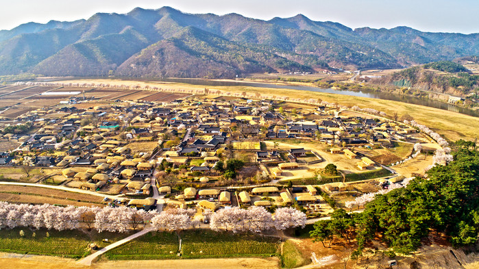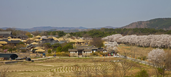 하회마을을 감싼 제방 위 벚꽃들도 초가와 기와등이 어우려져 색다른 풍경을 선사하고 있다. 안동시 농업기술센터에 핀 홍매화는 고혹적인 매력을 선사하고 있다.