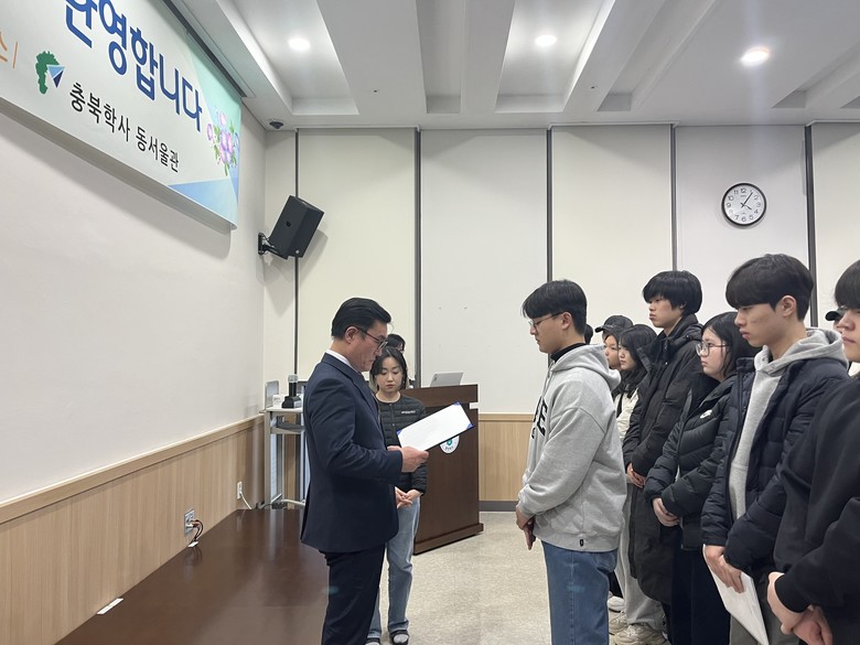 [충북 세계타임즈=이현진 기자] 충북학사(이사장 김영환)는 2025년 2월 27일 동서울관 대회의실에서 신입생 입사식을 개최하고 새로운 출발을 맞이한 신입생들을 환영했다.