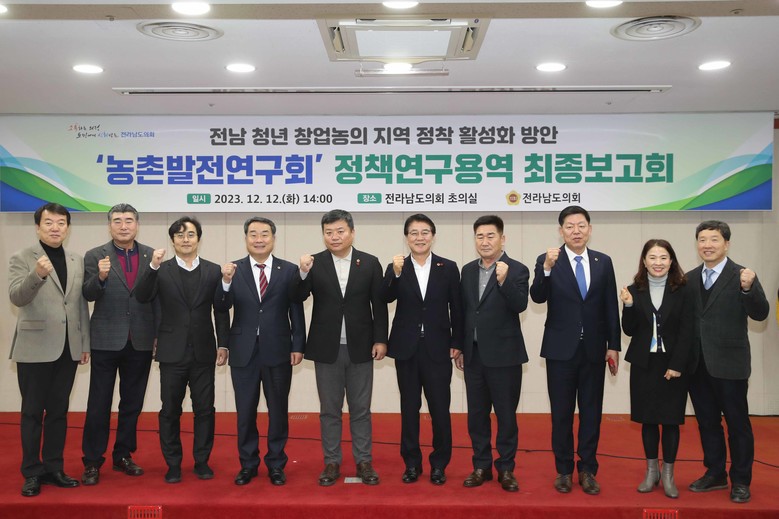 [전남 세계타임즈=우덕현 기자] 전남도의회 연구단체인 ‘농촌발전연구회(대표의원 정영균)’가 12월 12일 의회 초의실에서 ‘청년 창업농의 지역 정착 활성화 방안’ 연구용역 최종보고회를 개최했다.