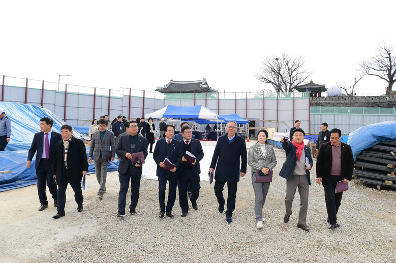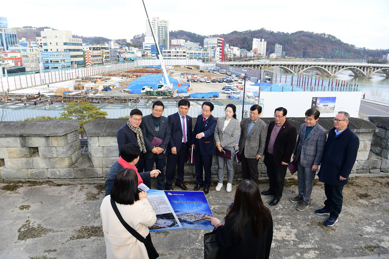 진주대첩광장은 통일신라시대부터 고려, 조선시대까지 이어지는 천년의 역사가 공존하는 역사공원으로 총사업비 940억원을 투입하여 진주성 촉석문 앞 19,870㎡의 부지에 공원지원 시설 등을 연면적 6,382㎡의 규모로 추진 중이다. 예산결산특별위원회는 2007년 기본계획 수립 후 17년 만인 올해 상반기에 준공을 앞둔 진주대첩광장을 방문하여, 공사추진 상황에 대한 업무보고를 받고 현장을 둘러보았다. 현장을 둘러본 예결위원들은 진주대첩광장이 진주의 호국정신을 기리고, 진주시를 대표하는 랜드마크가 될 수 있도록, 마무리 작업에 만전을 기하여 줄 것을 당부했다. 이후, 진주 제1, 2 정수장 정비사업지를 방문하여 노후화된 정비시설 현대화와 고도정수처리시설 설치사업 추진 경과를 점검하고 효율적인 물 관리 방안에 대해 논의했다.