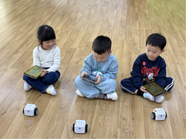 이번 1회차 활동은 연 9회 중 ‘AI로봇 아로봇과 친해져요’를 주제로 진행되었다. 유아들은 AI 로봇의 기본적인 조작 방법을 알아보고 직접 로봇을 움직여보는 경험을 했다. 이어서 로봇 경주 활동을 통해 정해진 방향으로 로봇을 조작하며 속도와 움직임을 조절해보는 시간을 가졌다. 유아들은 자신이 조작한 대로 로봇이 움직이는 모습을 관찰하며 인공지능에 대한 흥미와 친근감을 자연스럽게 형성할 수 있었다.