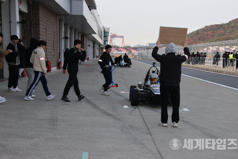 [세계타임즈=방춘재 기자] 2023 전국 대학생 포뮬러 자작 자동차 대회(KFGP)가 11월 25일과 26일 영암 F1 국제자동차경주장 상설경기장에서 열렸다.