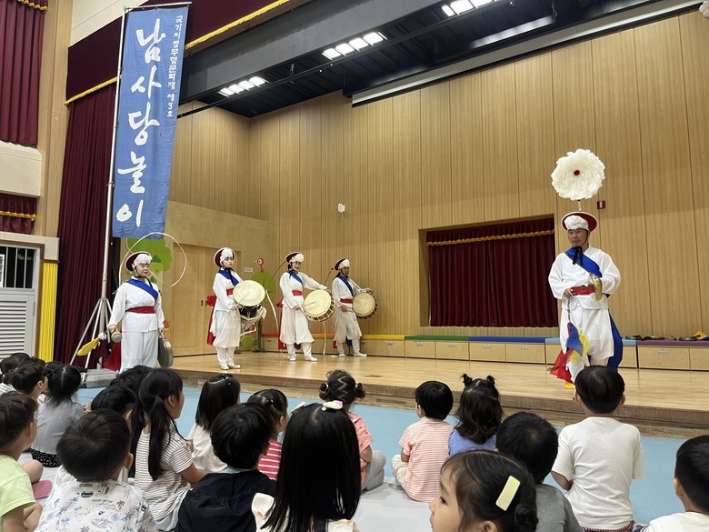 [파주시 세계타임즈=송민수 기자] 다율유치원(원장 박경숙)은 2025년 7월 1일(화)에 유치원 학부모회 주관으로 유아들의 전통문화에 대한 이해를 높이고 예술적 감성을 함양하기 위한 공연 체험 활동 ‘천지개벽의 남사당놀이’를 본원 강당(3층)에서 운영하였다.