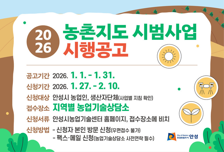 기타 자세한 사항은 안성시농업기술센터 홈페이지 공지사항에 있는 공고문이나 사업 담당 부서에 문의하면 된다.