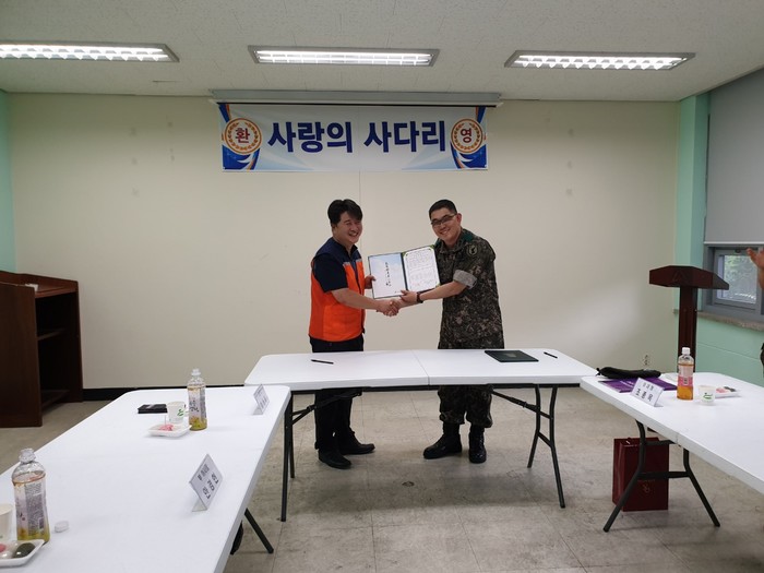 [대전=세계타임즈 이장성 기자] 따뜻한 나눔을 꾸준히 실천하고 있는 대전광역시 SNS 8천명 봉사단체 사단법인 사랑의 사다리 밴드(리더 이정제)는 31일, 오후 2시 유성구 반석동에 위치한 군수사령부내 유성대대와 업무협약식을 하였다.