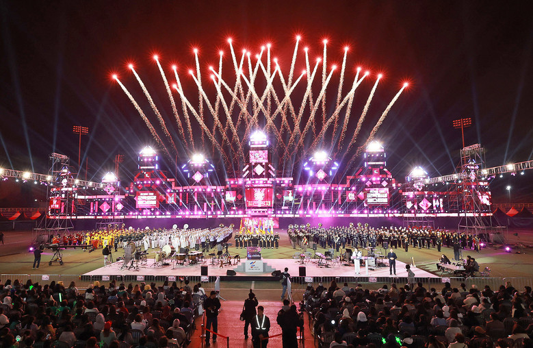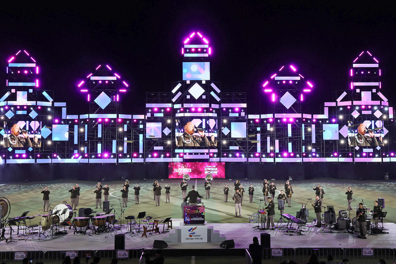 [창원시 세계타임즈=최성룡 기자] 3월 27일 오후 7시 진해공설운동장에서 제64회 진해군항제와 2026진해군악의장페스티벌 공동개막식이 성대하게 개최되었다. 이번 개막식은 내빈 인사말씀 없이 간소화된 방식으로 진행되었으며, 특히 군악대와 의장대의 환상적이 퍼포먼스는 참석자들에게 큰 감동과 흥미를 선사했다.