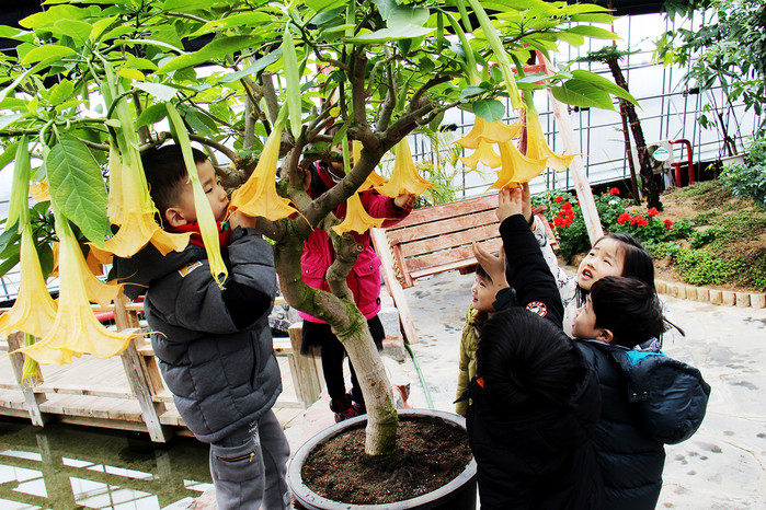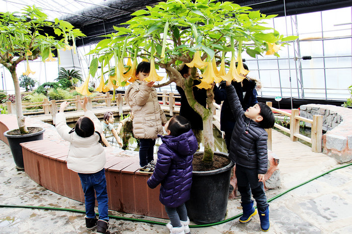 이곳에는 엔젤트럼펫뿐만 아니라 울긋불긋 포인세티아 등 200여 종의 온갖 식물들이 어우러져 봄소식을 제일 먼저 알리는 데 분주하다.