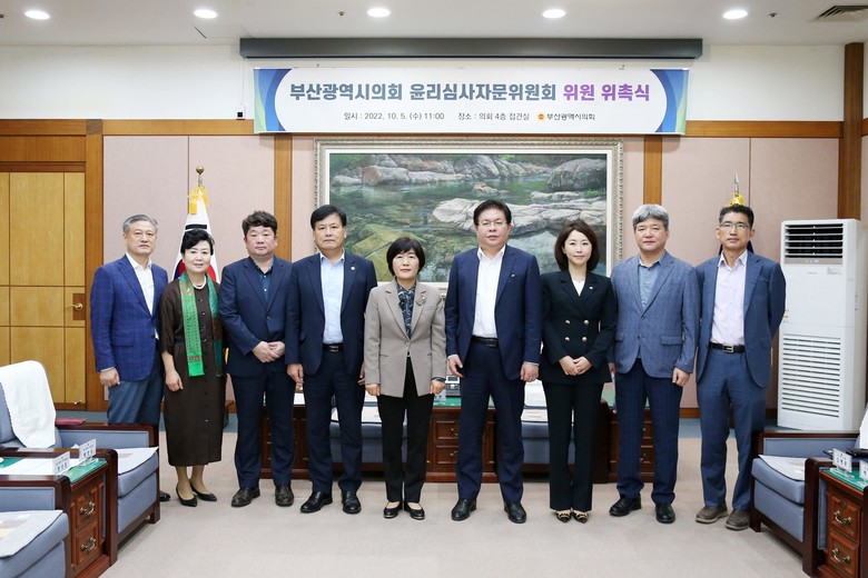 [부산 세계타임즈=이용우 기자] 부산광역시의회(의장 안성민)는 10월 5일 시의회 4층 접견실에서 윤리심사자문위원회 위촉식을 개최했다.