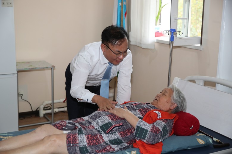 이후 대표단은 일제시대에 강제 이주당한 고려인 1세대 어르신들이 거주하는 아리랑요양원(원장 최성정)을 방문하여 개인 요양실에서 거주하는 어르신들을 찾아 위로를 전하고, 한국에서 준비해온 수면 양말을 위문품으로 전달했다.