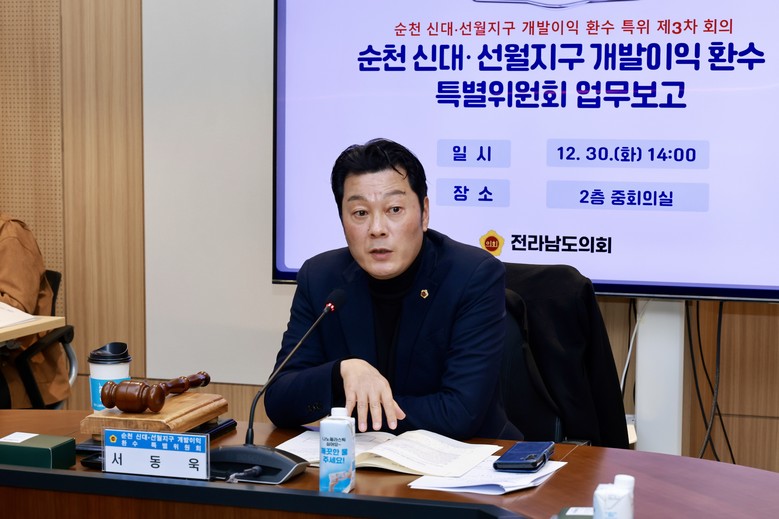 한편, 서동욱 의원의 문제 제기를 계기로 출범한 ‘순천 신대·선월지구 개발이익 환수 특별위원회’는 두 지구 전반의 개발이익 환수 구조에 대한 조사와 제도 개선 논의를 이어갈 계획이다.