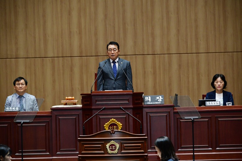 정무창 의장은 이날 개회사를 통해 “지난 24일 일본 정부는 기어코 후쿠시마 원전 오염수 방류를 시작하였다.”며 “정부에는 ‘대한민국 정부’답게 대처할 것을, 일본 정부에는 후쿠시마 원전 오염수 방류를 즉각 중단할 것을 강력히 촉구한다.”는 강한 결의를 밝혔다.