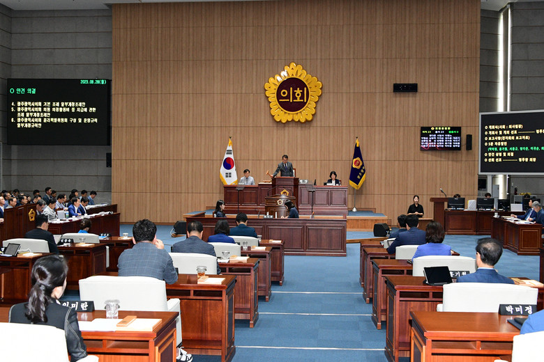 [광주 세계타임즈=손권일 기자] 광주광역시의회(의장 정무창)는 8월 28일 임시회를 개회하고 오는 9월 6일까지 열리는 제319회 임시회 회기에 들어갔다.
