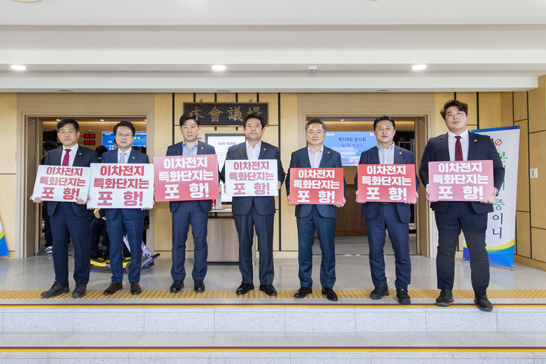 [경북 세계타임즈=한성국 기자] 경북도의회 포항시 도의원 9명은 5월 9일 제339회 임시회 2차 본회의에서 “2차전지 특화단지 포항 유치”를 위한 경상북도 차원의 노력을 촉구했다.