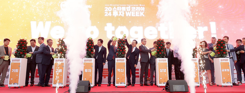 [대전 세계타임즈=이채봉 기자] 대전시의회 조원휘 의장은 3일 궁동 욧골문화공원에서 열린 ‘2024 스타트업코리아 투자위크 개막식’에 참석해 유망 스타트업과 국내외 투자사를 연결하는 행사를 마련한 대전창조경제혁신센터를 비롯한 한남대학교, 충남대학교 관계자에게 감사 인사를 전했다.