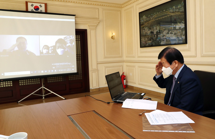 박 의장은 이어 청해부대 소속으로 연합해군사령부에서 파견근무를 하고 있는 김소운 중령과 화상통화를 갖고 “어려운 상황에서도 국가를 위해 봉사해주셔서 든든하다. 코로나 상황으로 외출도 못 하고 있다고 들었는데 무엇보다 건강을 챙겨 달라”며 안전을 당부했다.