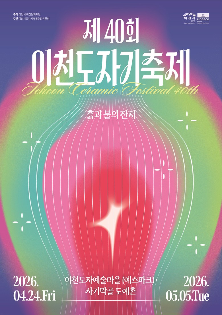 이번에 공개된 제40회 이천도자기축제 포스터는 지난 40년간 축제가 축적해 온 역사성과 도자기가 만들어지는 본질적 과정을 함께 담아 상징성을 시각적으로 풀어낸 것이 특징이다.