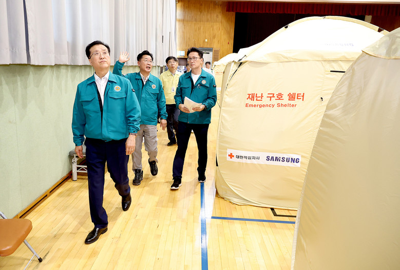 이어 이재민 대피시설인 기성종합복지관을 방문해 머물고 있는 피해 주민들을 위로하고 이재민들을 위해 급식 지원 등 봉사활동을 펼치고 있는 자원봉사자들에게 감사의 뜻을 전했다.