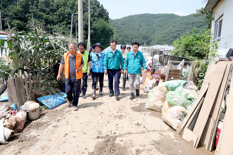 조 의장은 수마가 할퀴고 간 정뱅이마을 주택 피해 현장에서 피해 주민들의 애로사항을 청취했다. 또한 피해복구 작업에 참여 중인 봉사단체 회원들을 격려한 뒤, 관계자들에게 피해 주민들을 위한 실질적인 도움 제공과 신속한 복구를 당부했다.