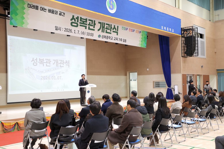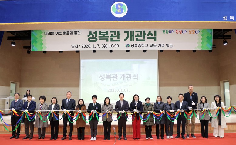 이 시장은 “시가 교육부와 경기도교육청과 함께 힘과 지혜를 모아 ’성복관‘을 만들었듯이 우리가 정성을 모으면 학생들이 얼마든지 더 밝은 미래를 개척할 수 있다”며 “이 공간이 배움과 건강이 함께 자라는 장소가 되길 바란다”고 강조했다.