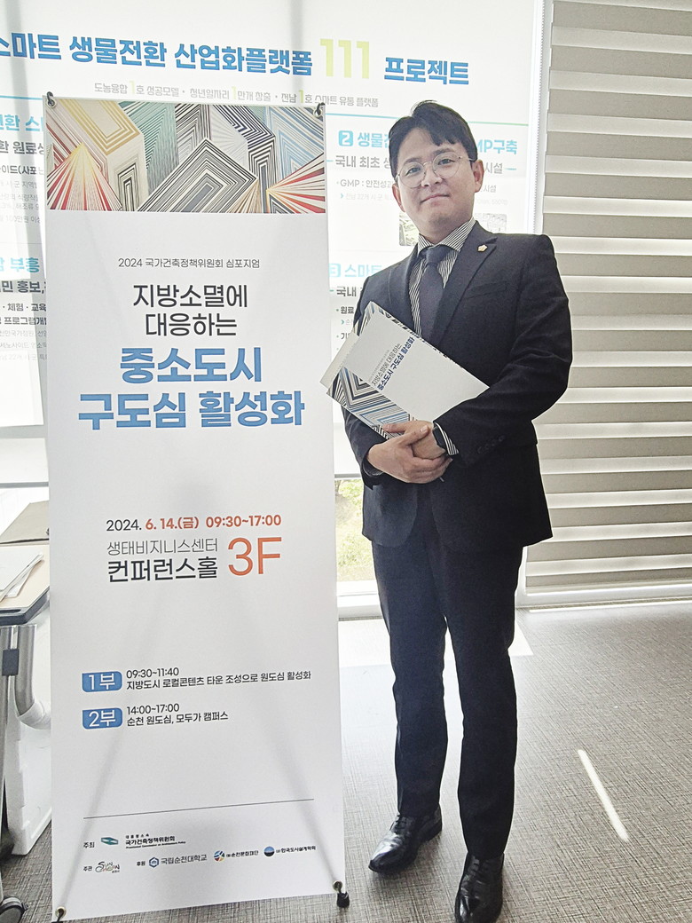 [순천시 세계타임즈=우덕현 기자] 순천시의회(의장 정병회) 의원 연구 모임인 ‘순천시의회 지방소멸 위기대응 연구모임’은 지난 14일 대통령 소속 국가건축정책위원회와 함께하는 ‘지방소멸 대응, 지방도시 도시재생 심포지엄’에 참석했다.