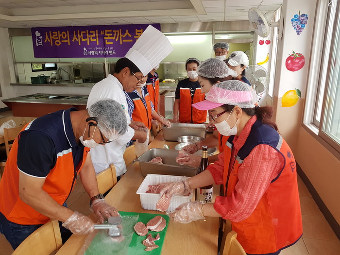 [대전=세계타임즈 이장성 기자] 대전시 소외계층을 위해서 다양한 봉사활동을 실천하고 있는 대전시 SNS 8천명 봉사단체 사단법인 사랑의 사다리 밴드(리더 이정제)는 12일 오후14시, 유성구 장대동 천양원(원장 이연형)에서 돈까스 봉사로 추석명절날에 우리 사회의 따뜻한 사랑을 전달하였다.