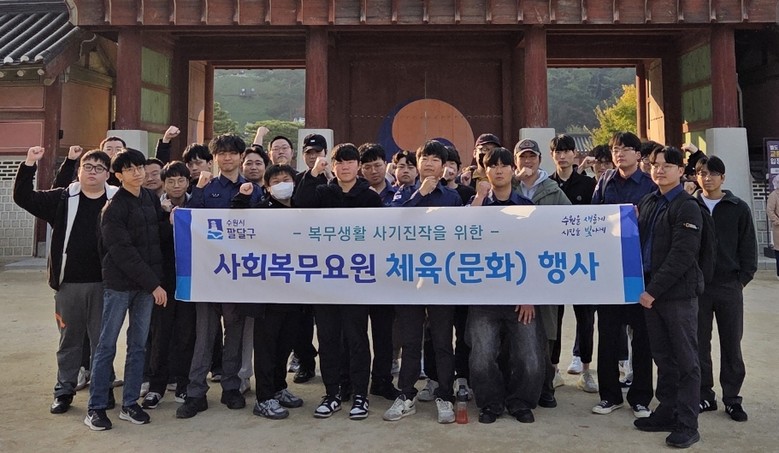 [수원시 세계타임즈=송민수 기자] 수원시 팔달구(구청장 이상균)는 2025년 11월 6일(목) 팔달구청 3층 대회의실과 화성행궁에서 사회복무요원을 대상으로 소양교육 및 문화체험을 실시했다.