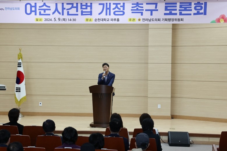 전라남도의회 기획행정위원회 주최, 전라남도 여순사건지원단 후원으로 열린 이날 토론회는 전문가를 비롯해 유족, 시민사회단체, 공무원 등 200여 명의 관계자가 참석했다. 「여수·순천 10·19사건 진상규명 및 희생자 명예회복에 관한 특별법」 개정과 관련한 다양한 의견을 수렴하여 22대 국회에 법 개정을 촉구하고자 개최됐다.