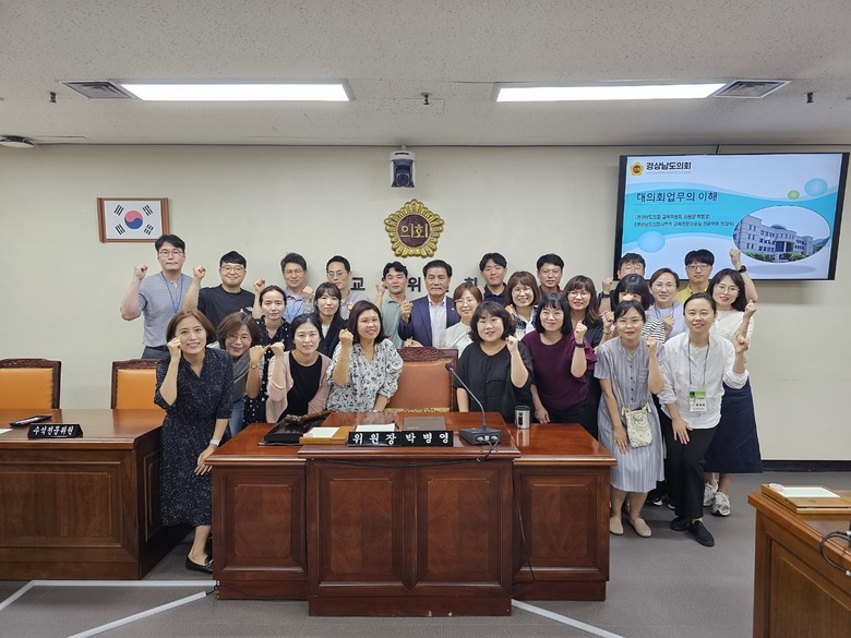[경남 세계타임즈=최성룡 기자] 경상남도의회 박병영(국민의힘, 김해6)의원은 19일 경상남도의회에서 경상남도교육청 일반직 6급 연수생들을 대상으로 교육 행정직의 전문성 신장을 위한 「6급 미래역량강화」교육을 진행했다.