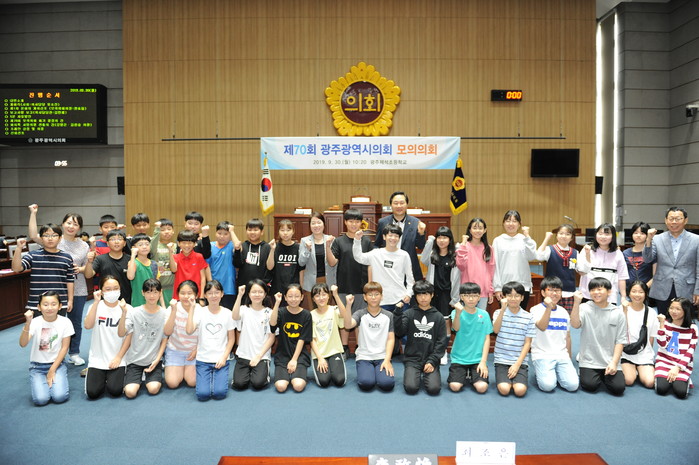 [광주=세계타임즈 손권일 기자] 광주광역시의회(의장 김동찬)는 9월 30일 10시 20분에 시의회 본회의장에서 광주제석초등학교 학생들을 대상으로 ‘광주광역시의회 제70회 학생 모의의회’를 개최하였다.