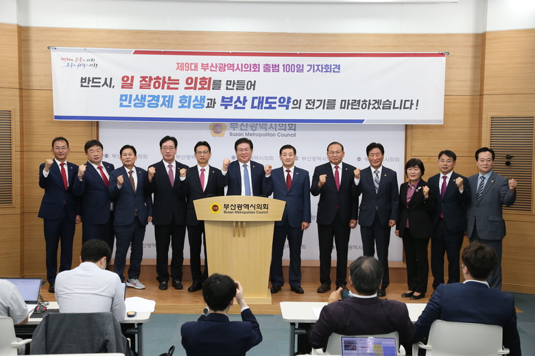 안 의장은 “제9대 부산광역시의회의 탄생과 지난 100일의 성과를 만들어주신 부산 시민 여러분께 다시 한번 깊은 감사의 인사를 드리며, 제9대 부산광역시의회는 반드시 ‘일 잘하는 의회’를 만들어 민생 회생과 부산 대도약의 전기를 마련하는데 앞장서겠습니다.” 며 출범 100일 기자회견문 발표를 마쳤다.