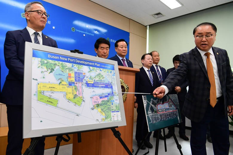 [경남 세계타임즈=최성룡 기자] 대한민국 최대 국책사업인 진해신항 건설이 본격화하고 있는 가운데 24일 경남도의회 1층 브리핑룸에서 박춘덕(국민의힘, 창원15) 의원을 비롯한 창원지역 출신 도의원 20명이 기자회견을 열어, 진해신항의 내륙컨테이너기지 ICD* 건설을 통해 해수부가 배후물류단지 공급부족 문제 해결에 적극 나설 것을 촉구했다.
