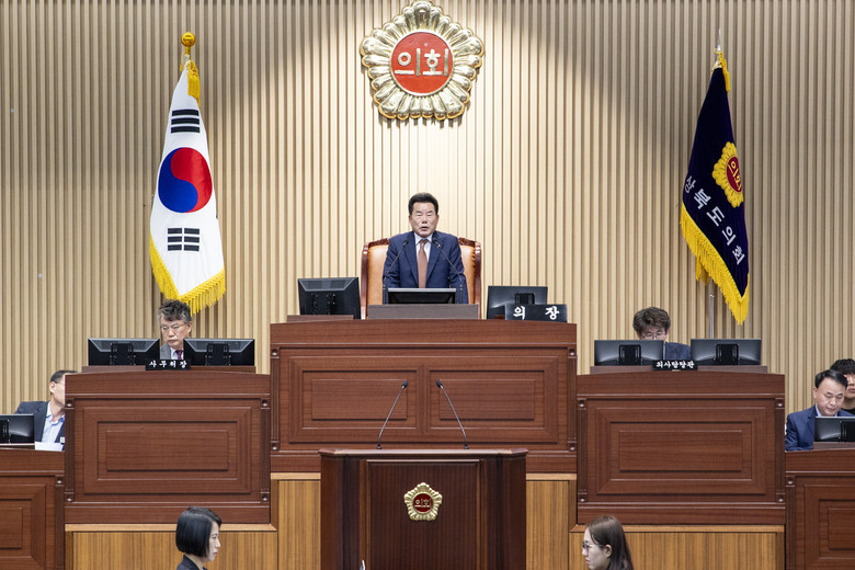 배한철 의장은 개회사를 통해 “도민의 실생활에 도움이 되는 조례 제·개정과 포항·구미 특화단지 유치, 안동·경주·울진 신규 국가 산단 선정 등 경북의 미래 먹거리 확보를 위해 의정역량을 집중해왔다”며, 제12대 도의회의 의정활동에 대한 소회를 밝히는 한편,