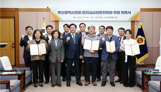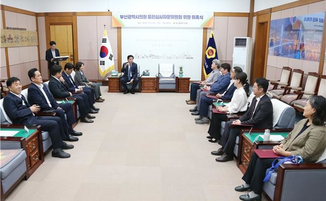 [부산 세계타임즈=이용우 기자] 부산광역시의회(의장 안성민)는 10월 2일 시의회 4층 접견실에서 윤리심사자문위원회 위촉식을 개최했다.