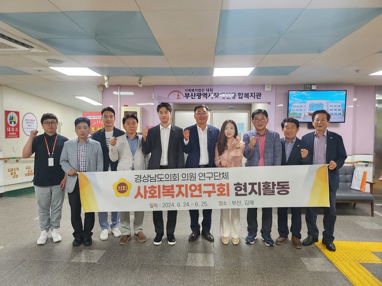 [경남 세계타임즈=최성룡 기자] 경상남도의회 의원 연구단체인 ‘사회복지연구회’(회장 조인제 의원, 이하 “연구회”)는 6월 24일부터 1박 2일 일정으로 부산, 김해를 찾아 발달지연 영유아 등 장애인복지 사각지대 대응 방안 모색을 위한 현지 활동을 펼쳤다.