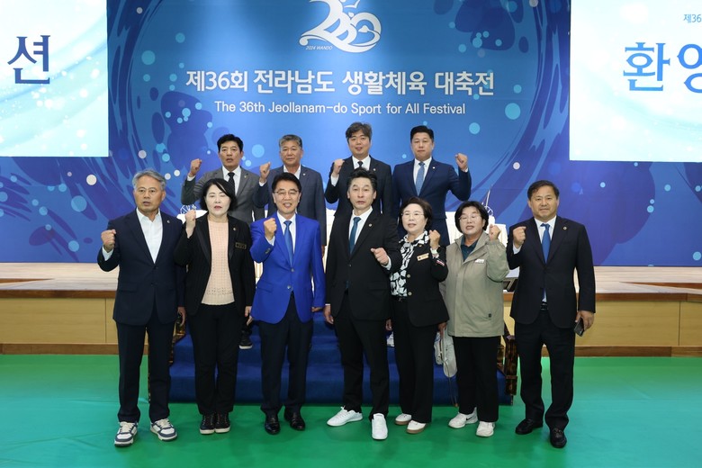 [전남 세계타임즈=우덕현 기자] 전라남도의회 의원 연구단체인 ‘스포츠 건강정책 연구회(대표의원 박성재)’ 의원들이 지난 10월 18일 완도 공설운동장에서 개최된 제36회 전라남도생활체육대축전 개회식에 참석하여 선수단을 격려했다.