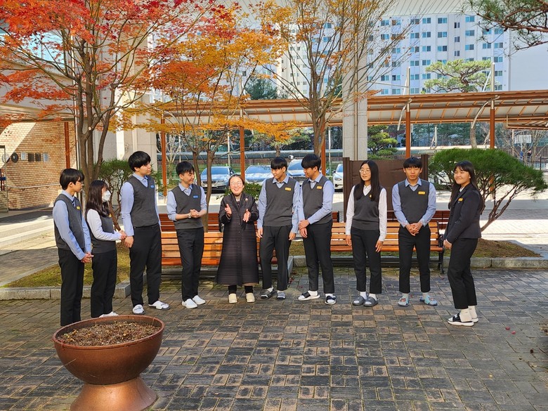 | ▲ 교장선생님과 독서동아리 학생들_대전지족고등학교 사진 |