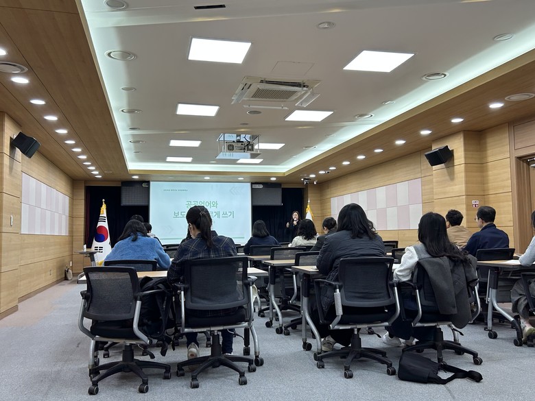 송민영 연구원은 공문서 및 보도자료 작성 시 ‘올바른 글쓰기’를 비롯해 어려운 행정 용어 및 외국어·한자어를 줄이고, 순우리말이나 알기 쉬운 표현으로 순화할 수 있도록 교육을 진행했다.