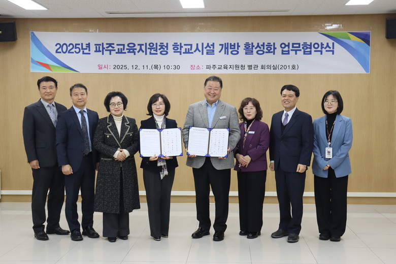 전선아 파주교육지원청 교육장은 “이번 협약을 계기로 학교와 지역사회가 한층 더 긴밀히 협력하며, 지역 주민들의 학교시설 이용에 큰 도움이 될 것으로 기대한다”며 “앞으로도 학교시설 개방이 안정적으로 정착될 수 있도록 지속적인 지원과 관심을 다하겠다”고 밝혔다.