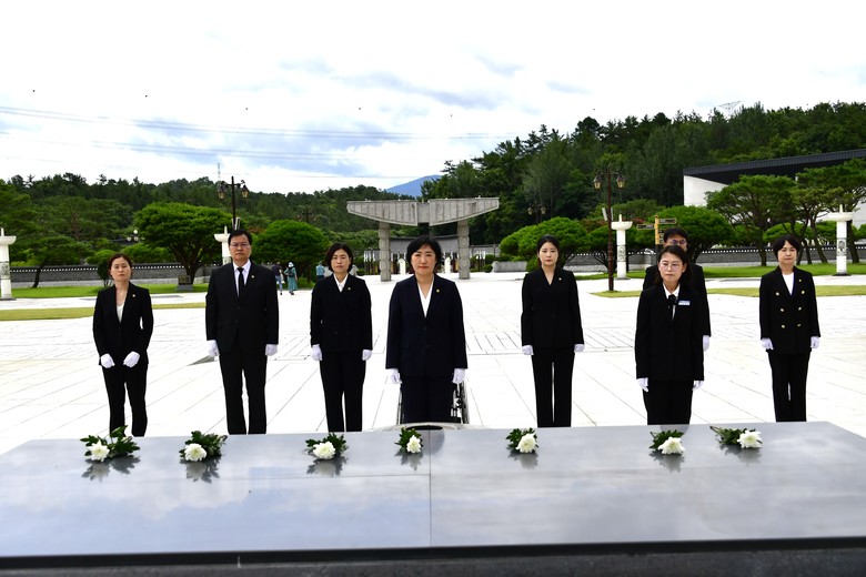 신수정 의장을 비롯한 9대 의회 후반기 의장단 및 상임위원장단은 22일 광주독립운동기념탑을 시작으로 광주학생독립운동기념탑, 현충탑, 4·19의거 희생 영령추모비, 국립 5·18민주묘지를 차례로 방문해 합동 참배했다.