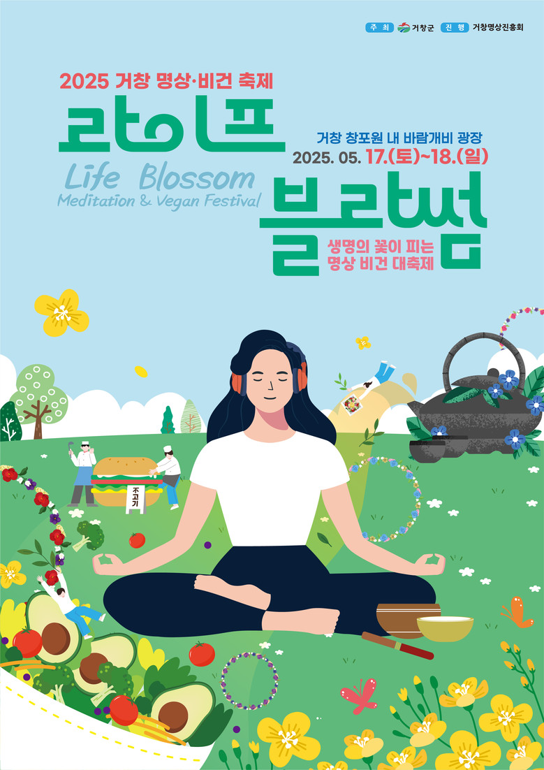 [거창군 세계타임즈=최성룡 기자] 거창군은 5월 17일부터 18일까지 이틀간 거창창포원 바람개비 광장에서 2025 거창 명상·비건 축제 ‘라이프 블라썸(Life Blossom)’을 개최한다고 밝혔다.