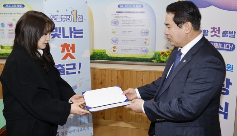 [광주 세계타임즈=손권일 기자] 광주시교육청(교육감 이정선)은 30일 서광초등학교에서 공직사회에 첫발을 내딛는 새내기 공무원을 응원하기 위한 ‘빛나는 첫 출근!’ 행사를 개최했다.