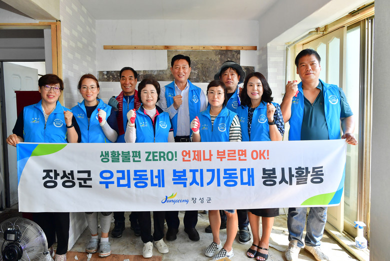 이날 우리동네 복지기동대 활동은 전남도의회 김회식 의원과 지역봉사단이 참여해 곰팡이가 가득한 벽지·장판을 교체하고 노후 가구 정리, 청소 등의 작업이 진행됐다.