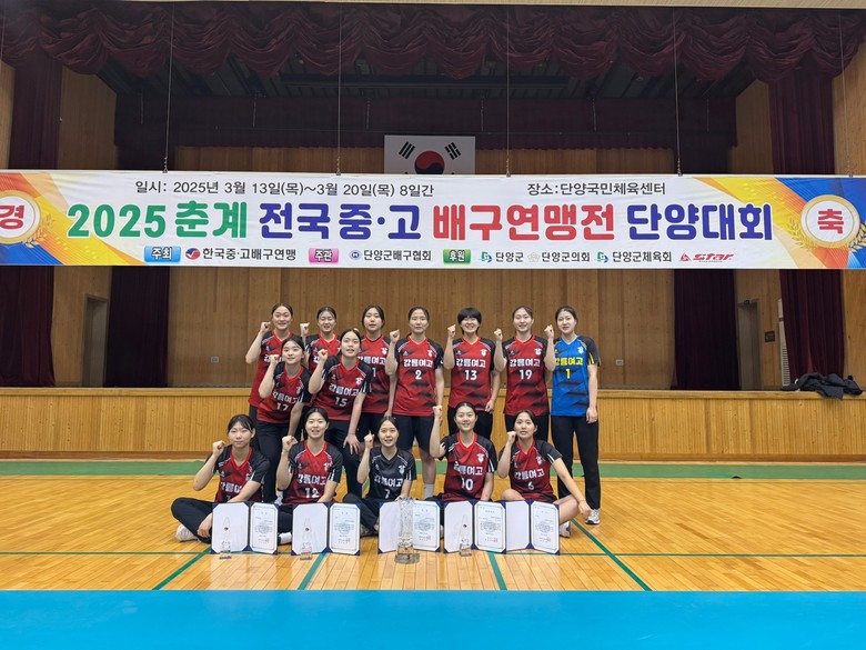 [강원도 세계타임즈=김민석 기자] 강릉여자고등학교(교장 주향숙) 배구부는 3월 13일(목)부터 3월 20일(목)까지 충청북도 단양 매포체육관에서 열린 2025 춘계 전국 중‧고 배구대회에서 준우승을 차지하였다.